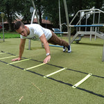 Die Speed Agility Ladder kann sowohl drinnen als auch draußen verwendet werden und eignet sich sehr gut für das Aufwärmen, Bootcamps und Konditionstraining. Die StreetGains Speed Agility Ladder ist in einer vier und einer acht Meter langen Ausführung erhältlich. Je nach gewählter Ausführung besteht das kurze Modell aus acht Brettern und das lange Modell aus sechzehn Brettern. Die Sprossen sind aus hochwertigem Kunststoff gefertigt und sehr widerstandsfähig. Dadurch wird sichergestellt, dass die Speed Agility Ladder nicht bricht, wenn Sie versehentlich auf der Leiter ausrutschen. Der Abstand zwischen den Sprossen lässt sich leicht verstellen und somit selbst bestimmen. Die Speed Agility Ladder wird mit einer praktischen Tragetasche mit Gurt geliefert, sodass sie bequem zu jedem Training mitgenommen werden kann.