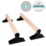 De ergonomische houten handgreep van de lage parallettes biedt een perfecte grip tijdens het trainen.