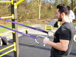 Le pack StreetGains Muscle-Up vous accompagne pas à pas vers le muscle-up parfait. Le muscle-up est un exercice impressionnant au poids du corps, souvent pratiqué en CrossFit et en callisthénie. Commencez l'exercice en vous hissant au-dessus de la barre. Ensuite, poussez votre corps vers le haut en étendant les bras. L'exercice consiste en un mouvement de poussée et de traction, sollicitant tout le haut du corps. Pour réaliser le muscle-up, vous aurez besoin d'une barre de traction ou d'anneaux. Commencez par la bande de résistance verte et progressez progressivement jusqu'à la bande rouge. Une fois que vous maîtrisez les muscle-ups avec la bande rouge, vous pouvez essayer sans ! Avant de commencer, vous devez savoir faire quelques tractions. Vous pouvez utiliser le pack StreetGains Pull-Up .
